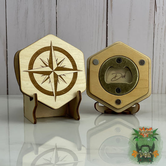 Wooden Hex-shaped bottle opener, refrigerator magnet