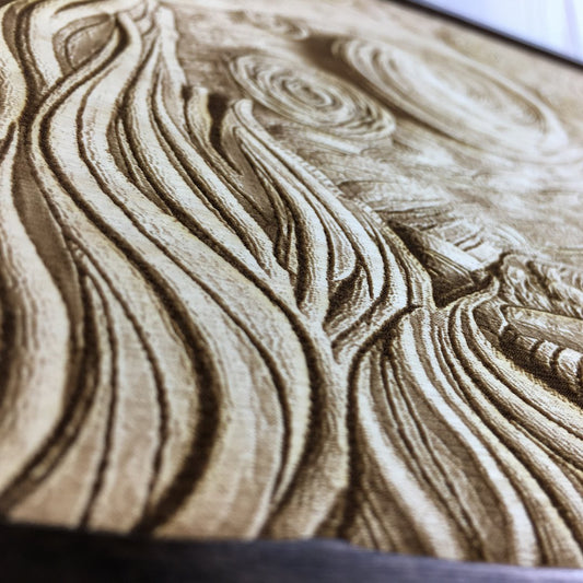 Framed wood engrave of Van Gogh's "The Starry Night"