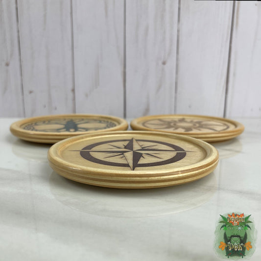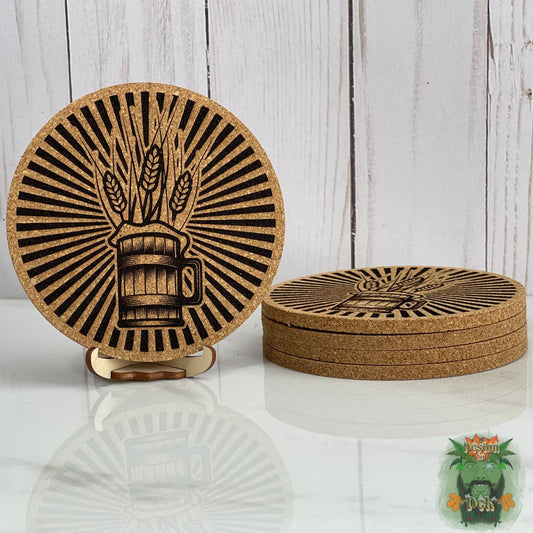 Cork Coasters - Round (Set of four, various designs w/optional decorative birch caddy)