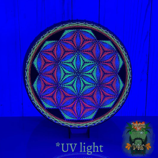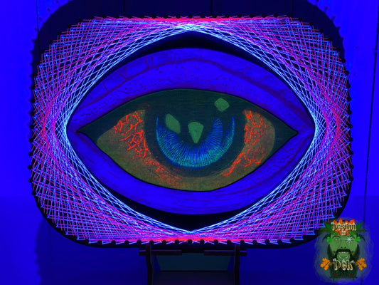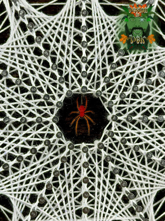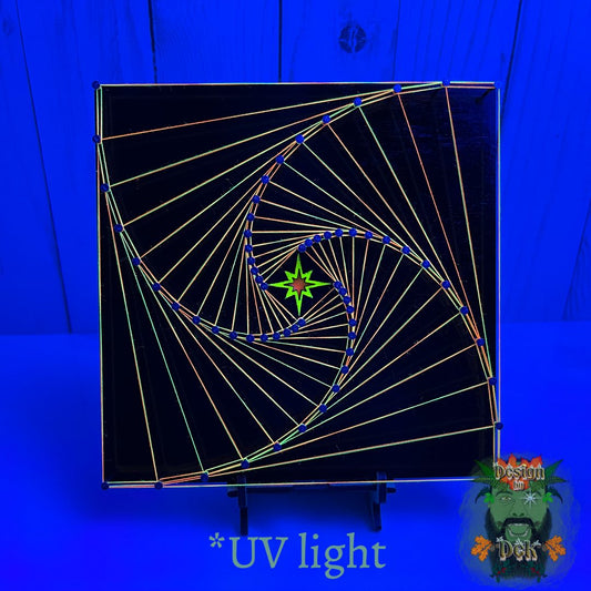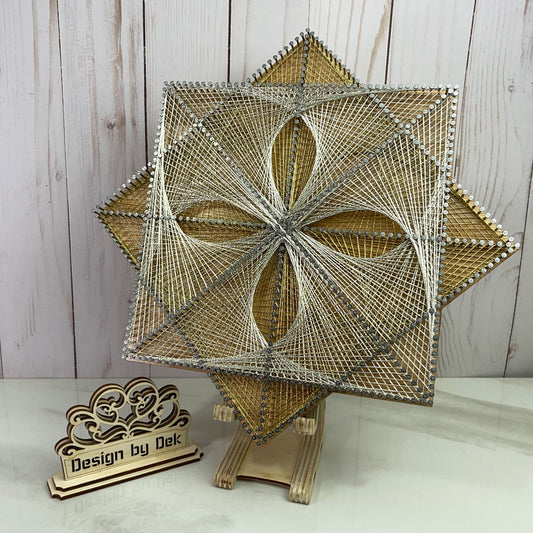 String art, also known as pin and thread art, is characterized by an arrangement of colored thread strung between nails hammered in wood to form geometric patterns or representational designs.
