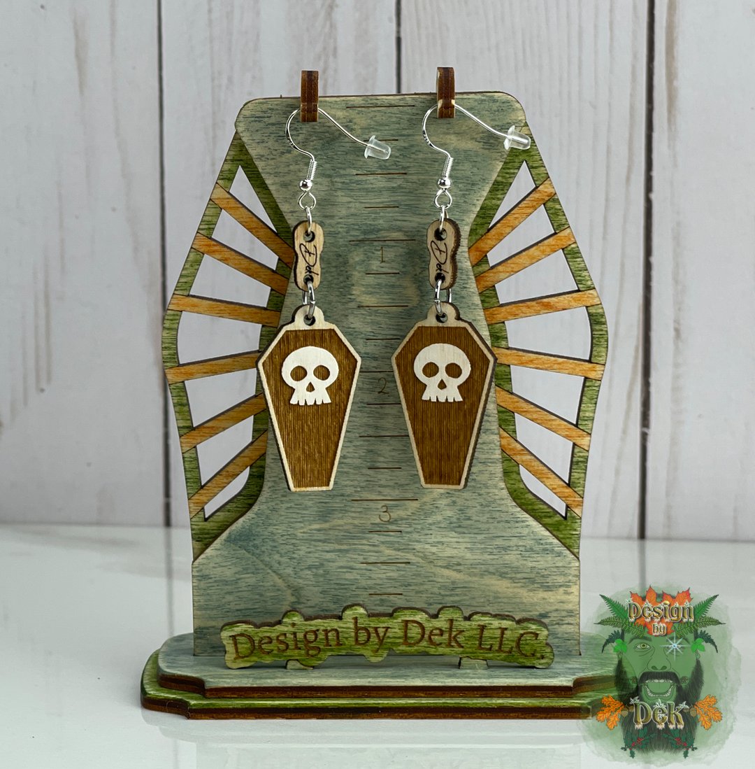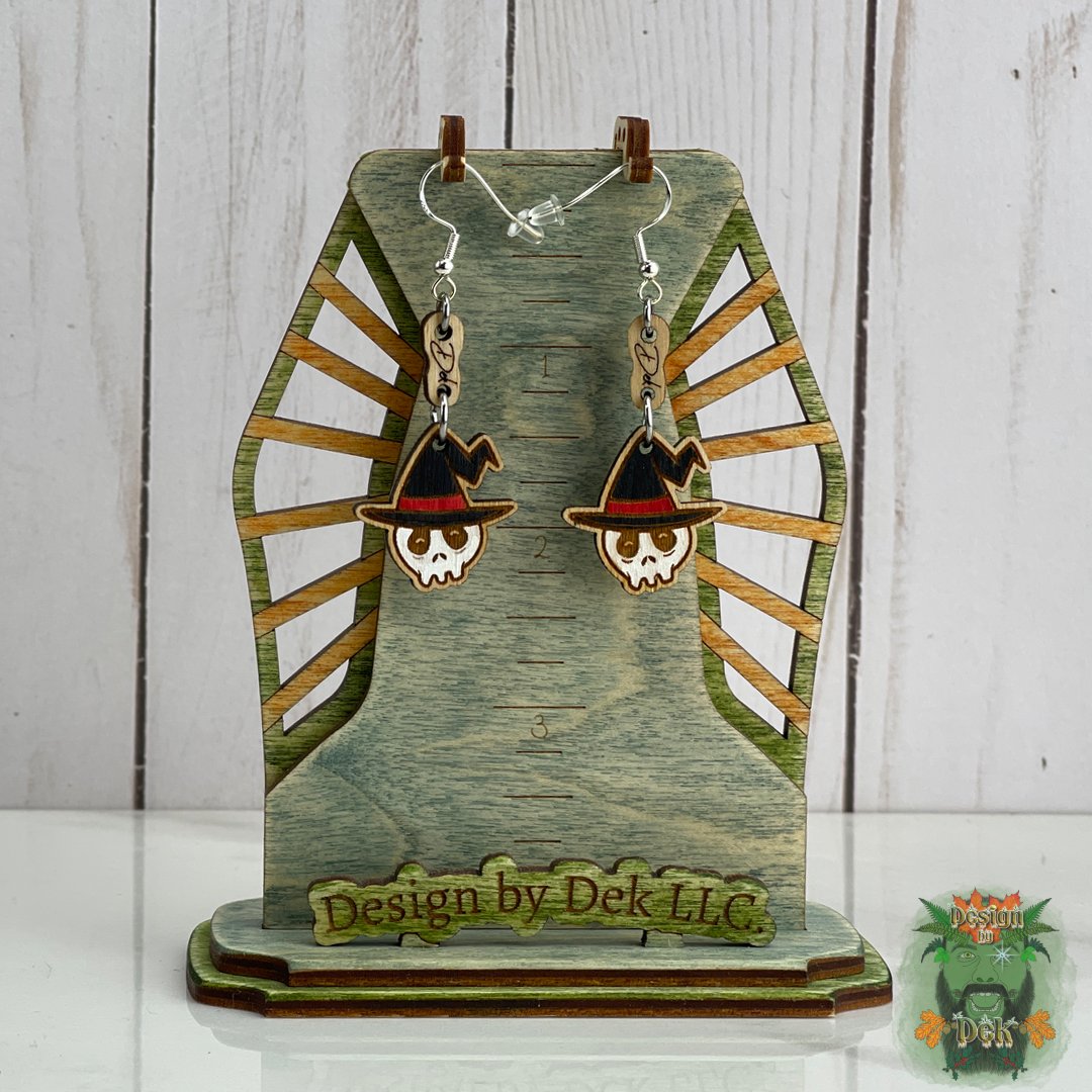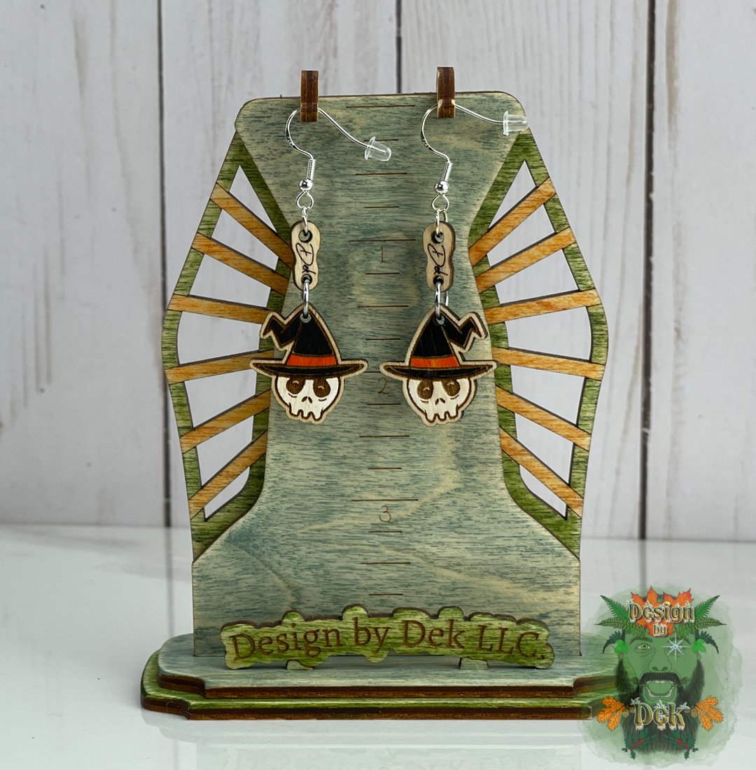 Embrace the spirit of Halloween with our Wooden Dangle Earrings showcasing fun and eerie motifs like witches, skulls, bats, spiders, coffins, and Jack-O-Lanterns. Made from birch ply for added strength, these earrings are the perfect way to add a touch of spooky style to your look.